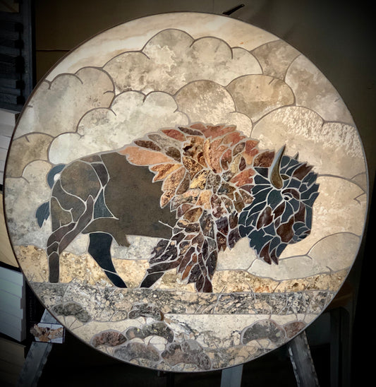 together to create a fluid sea turtle floor medallion.The finished product was like breathing life into cold hard stone...